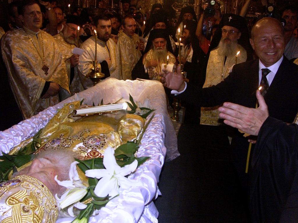 August 2007, la catafalcul Patriarhului Teoctist.