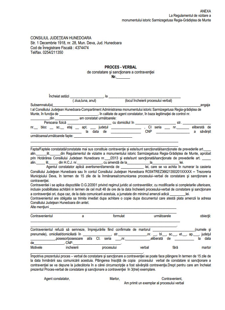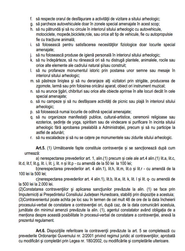 - În hotărîrea de mai sus se vorbește și despre contravenții sancționate cu amenzi. Regulamentul poate fi citit aici, aici și aici. Astfel, pentru accesul în zona cetății în afara programului (art. 1), Victor ponta este pasibil de o amendă între 50 și 100 de lei, iar pentru intrarea în situl arheologic cu ATV-ul, respectiv pentru producerea de gălăgie (art. 4) amenda este între 100 de lei și 500 de lei.