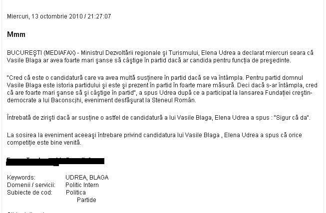 Ştirea – orice student la jurnalistică ar trebui să ştie asta – este răspunsul la câteva întrebări: cine?, ce?, când?, unde?, de ce? şi cum? La care se adaugă, desigur, un titlu corect, atrăgător. Din păcate, tot mai puţine instituţii de presă oferă astăzi ştiri bune. Adică ştiri complete, duse pînă la capăt. Greu, foarte greu mai poţi găsi astăzi ştiri corecte, cu un titlu atît de atrăgător, precum e cea de la ora 21.27 din imaginea de mai jos. Este de pe fluxul unei agenţii de ştiri, iar materialul complet pote fi citit aici. Aşa da!
