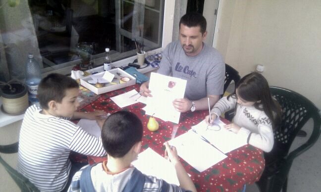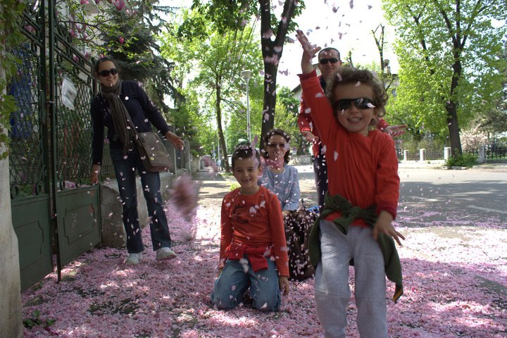 Am început-o, de dimineaţă, cu o cafea bună la Starbucks. Apoi am făcut o baie de petale roz pe strada Atena (foto 1). Am traversat alte două străzi şi am intrat în muzeul Zambaccian, unde m-am întîlnit cu Tonitza, Grigorescu, Luchian, Cézanne, Delacroix şi Picasso. Motiv suficient să ne urcăm în maşini şi să dăm o fugă la casa prietenilor mei din Mogoşoaia pentru un atelier de pictură foarte naivă (foto 2). Tempera, că vopseluri în ulei nu mai am de mult. Modele: o pară, un măr şi o portocală. Între timp am mîncat salată cu mult pătrunjel şi roşii, respectiv brînzeturi bune luate de la Târgul ţăranului. Seara am încheiat-o cu plănuirea unei ture de biciclete în pădurea Comana, care se va întîmpla astăzi. Înainte să mă apuc să vă scriu toate astea, am sădit în grădina de pe balcon două răsaduri de roşii. Pe care le-am şi udat.