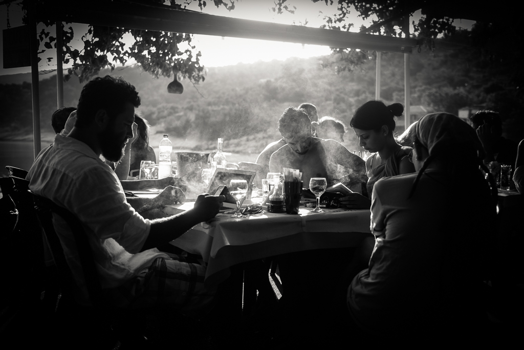 Ziua s-a încheiat cu o cină oferită de Bancpost, la taverna Beautiful Alice din Aliki. “Puncte Oriunde. Punctezi în fotografie, punctezi în filosofie”. Mă iertați, dar la acest eveniment am simțit nevoia să scot din rucsac o cameră foto profesională: