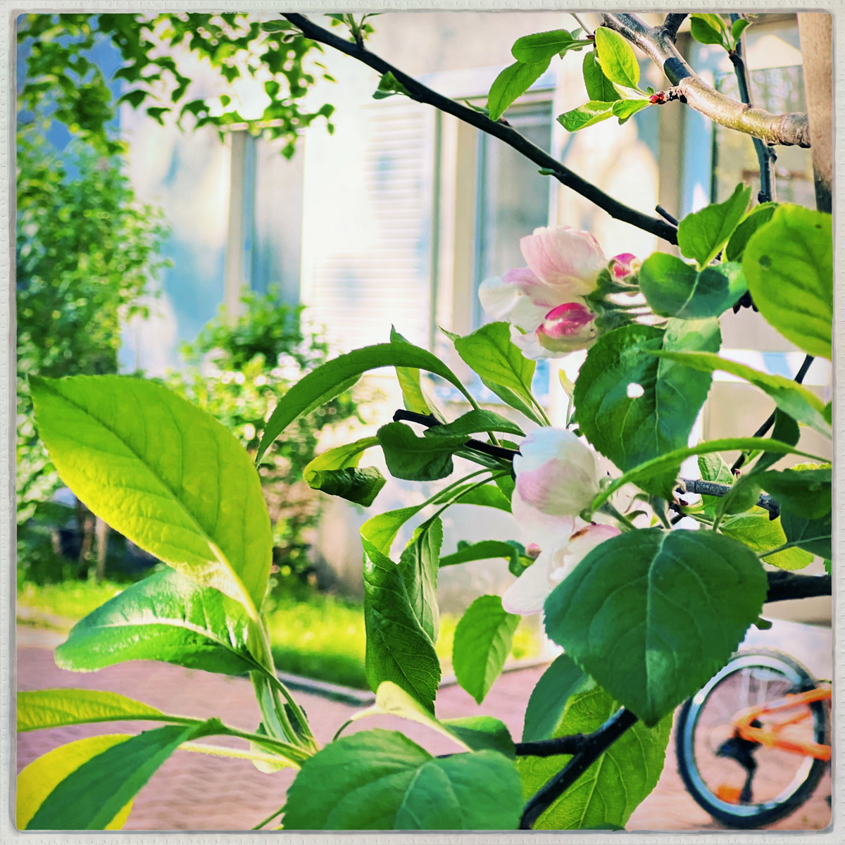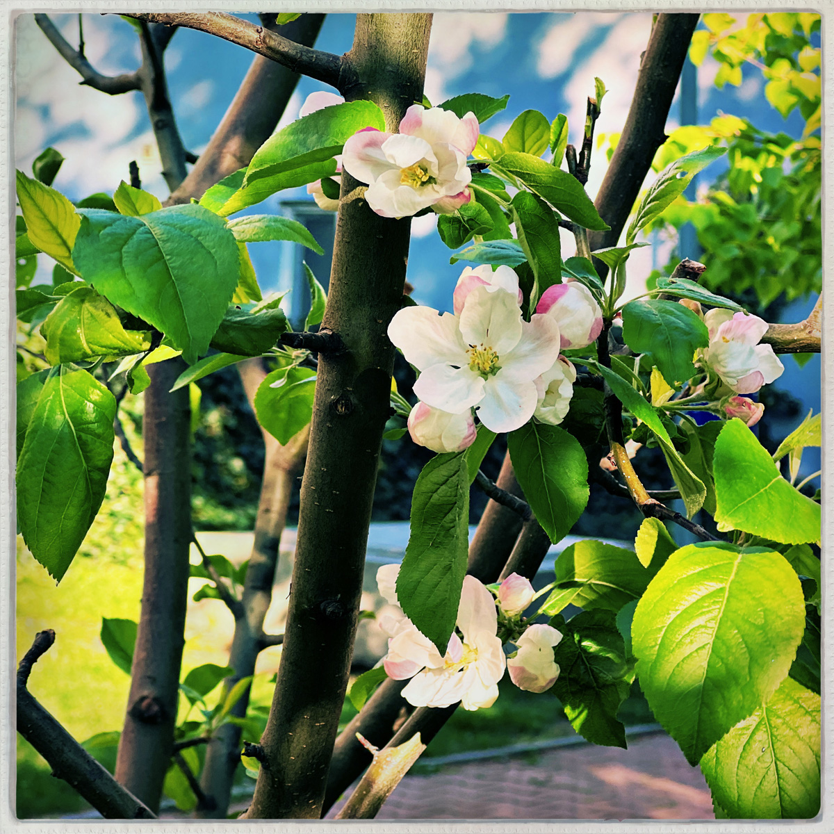 Te-am dus la şcoală, ți-am vorbit pe drum despre punctualitatea ca formă de respect (nu ți se părea important, “poate aşa era pe vremea voastră, tata”), iar când m-am întors acasă am descoperit că mărul tău, de-o vârstă cu tine, a înflorit. La fel și căpşunile, fragile, rozmarinul, prunii, piersicul, chiar și smochinul, cel cu inflorescență inversată – toate puse pentru tine.